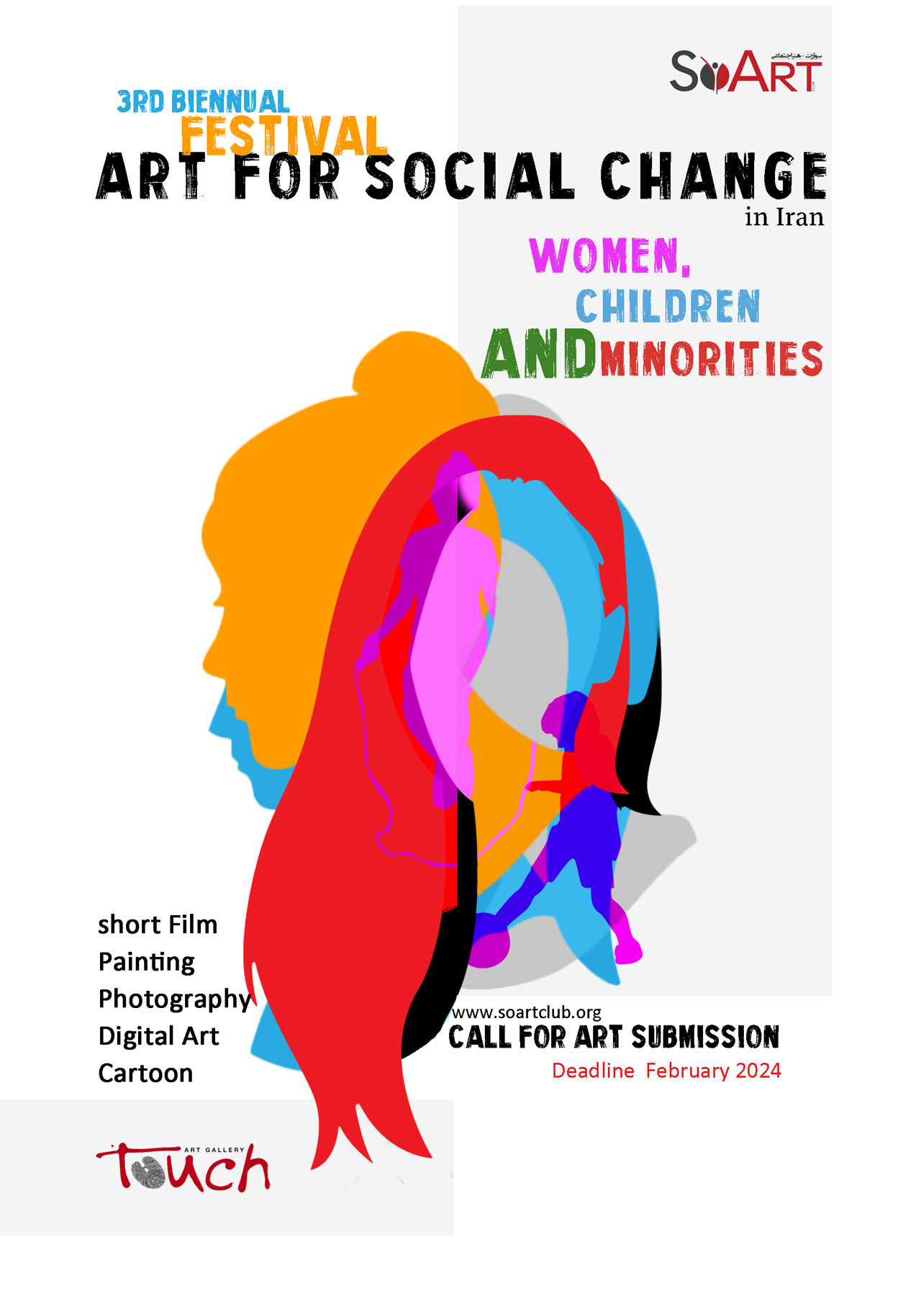 کلوپ هنری «سوآرت» دومین دوره «فستیوال هنر برای تغییرات اجتماعی» را با تمرکز بر حقوق و مسایل زنان، کودکان و اقلیتها در ایران، افغانستان و تاجیکستان برگزار میکند. هدف این فستیوال، گردهمایی هنرمندانی است که دغدغه مسایل اجتماعی دارند و می خواهند در تغییرات اجتماعی اثرگذار باشند. این فستیوال می کوشد با حمایت از هنرمندان، آثار خلق شده در خصوص مسایل زنان، کودکان و اقلیت ها را به نمایش گذاشته و با گشودن فضای گفتگو و مباحثه در پروسه تغییرات اجتماعی ایفای نقش کند.